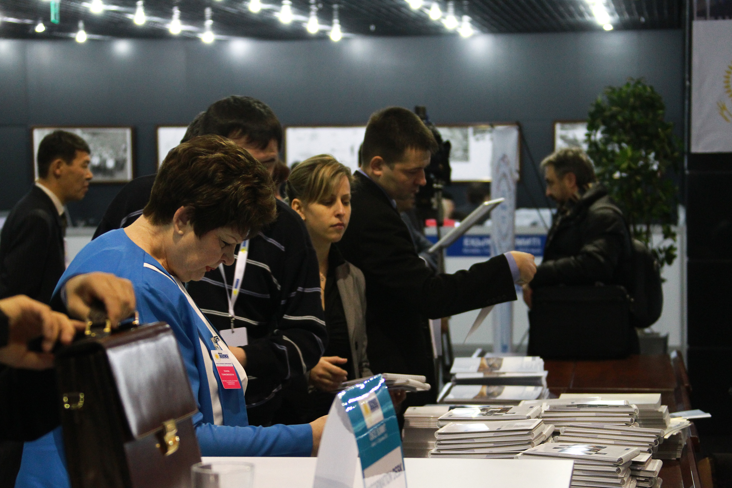 Des participants à la Conférence d’examen de l’OSCE à Astana, qui précède le Sommet, en train d’étudier des documents, Astana, le 26 novembre 2010.