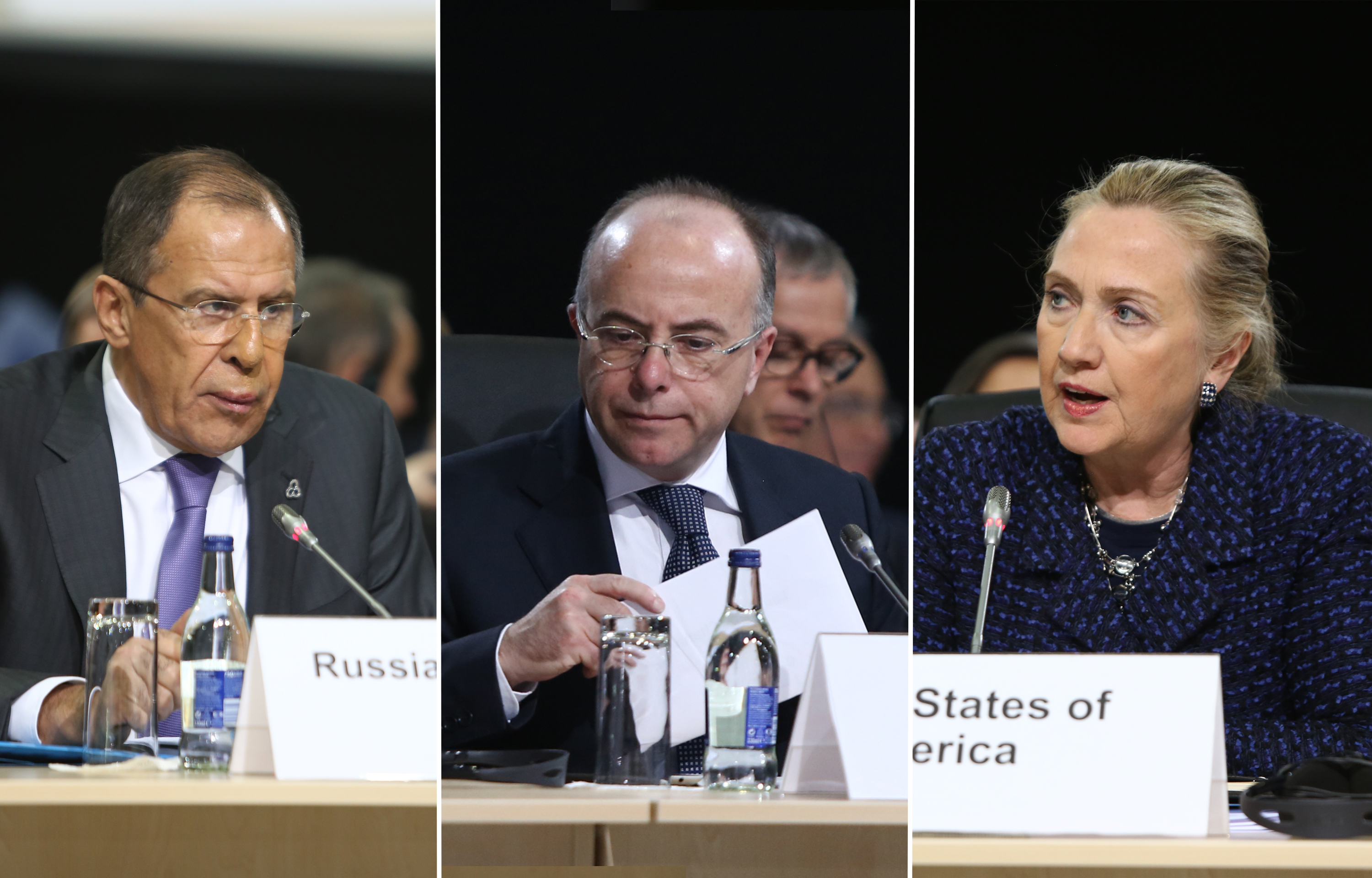 The Heads of Delegation of the OSCE Minsk Group Co-Chair countries: (l-r) Foreign Minister of the Russian Federation Sergey Lavrov, Minister Delegate for European Affairs of France Bernard Cazeneuve, and Secretary of State of the United States Hillary Rodham Clinton, at the 2012 OSCE Ministerial Council in Dublin, 6 December 2012.