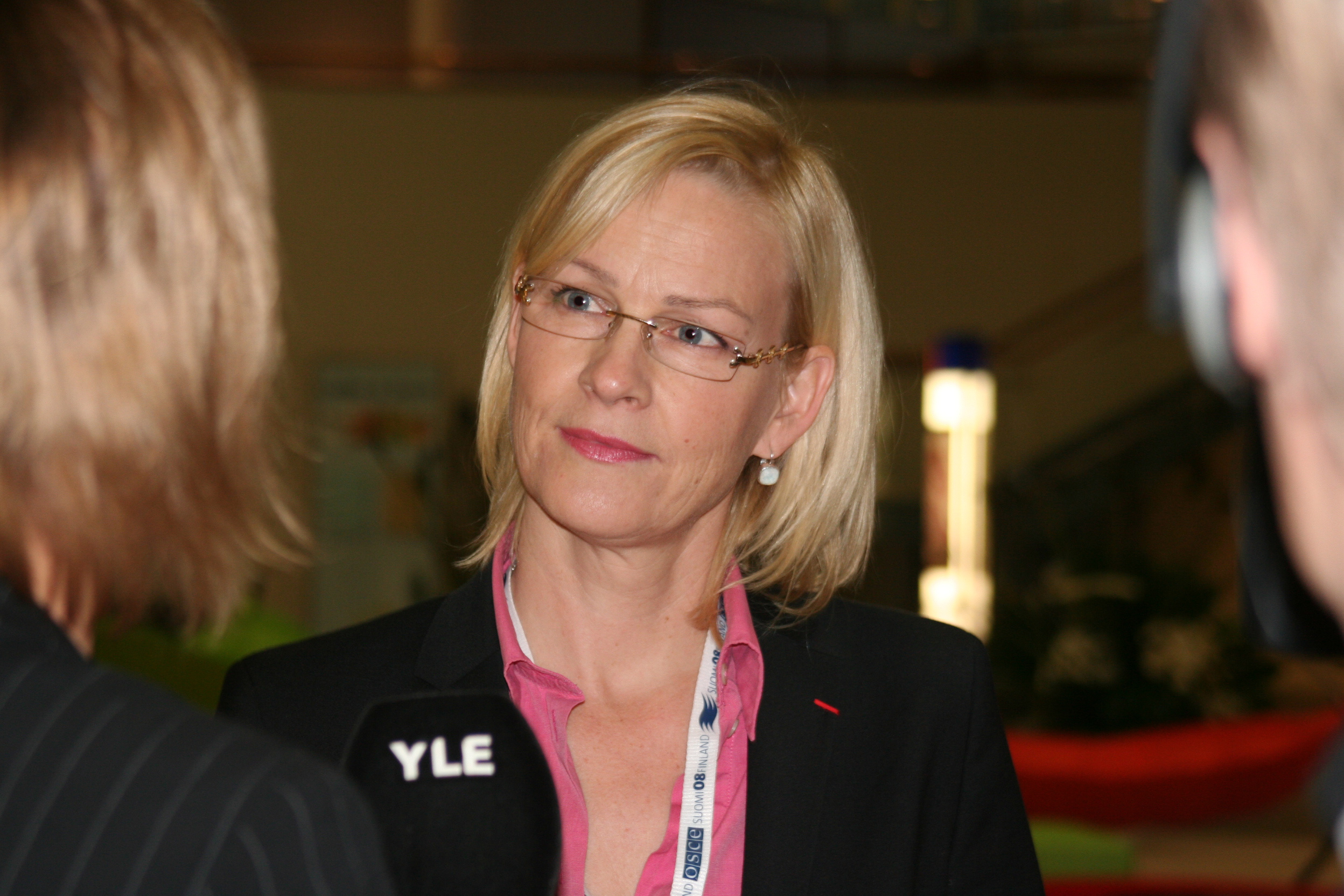 OSCE Special Representative on combating human trafficking, Eva Biaudet, gives an interview at the 16th OSCE Ministerial Council in Helsinki, 4 December 2008.