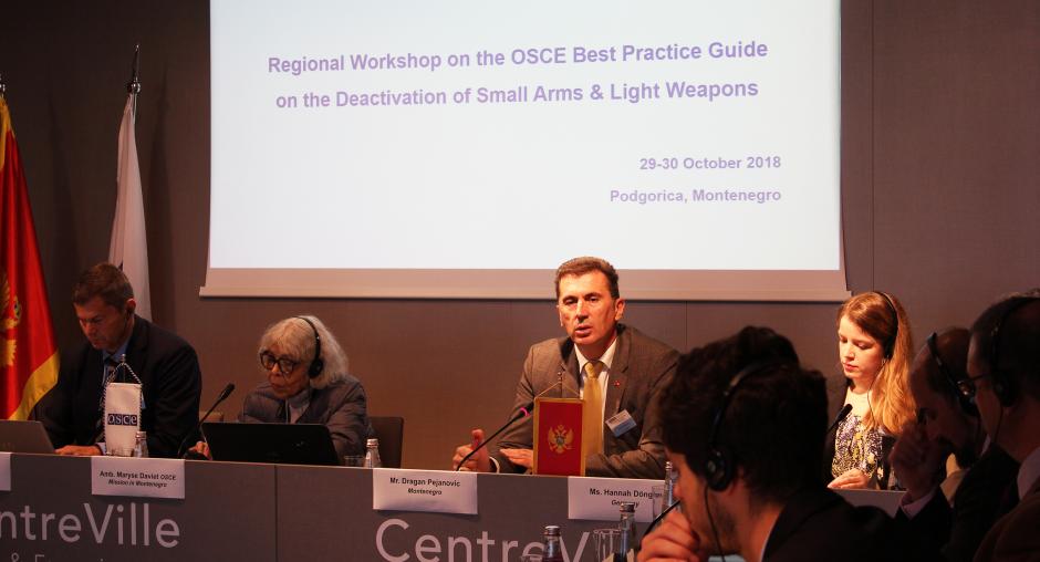 Radionici na temu deaktiviranja malog oružja i lakog naoružanja u skladu sa međunarodnim standardima, i pristupima i procedurama za borbu protiv diverzije i nezakonite prodaje, koju organizuju Centar za prevenciju sukoba OEBS-a, Misija OEBS-a u Crnoj Gori i crnogorska ministarstava unutrašnjih poslova i odbrane, prisustvuje oko 50 učesnika iz jugoistočne Evrope.