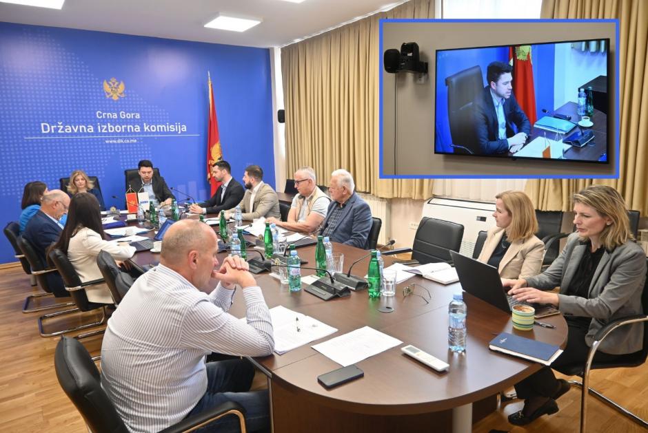 Državna izborna komisija Crne Gore održava prvu sjednicu koja se emituje uživo, koristeći video opremu koju je obezbijedila Misija OEBS-a u Crnoj Gori, Podgorica, 15. april 2025. godine.