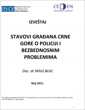 The report includes findings of a public opinion survey, conducted by the non-governmental organization Centre for Democracy (CEDEM) in the period April 2011, for the OSCE Mission to Montenegro. The purpose of the report is, among others, to measure the attitude of citizens of Montenegro about police, efficiency of police work, confidence in police, perception of security, co-operation between citizens and police, experiences in contact with police and attiude towards organized crime.