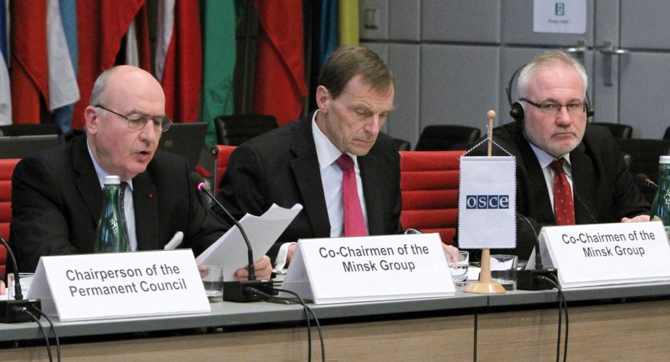 VIENNA, 3 November 2011 - The Co-Chairs of the OSCE Minsk Group (Ambassadors Bernard Fassier of France, Robert Bradtke of the United States, and Igor Popov of the Russian Federation) and Ambassador Andrzej Kasprzyk (Personal Representative of the OSCE Chairperson-in-Office) presented their annual report of activities on November 3 to the Permanent Council of the OSCE, in light of the upcoming OSCE Ministerial Council in Vilnius.