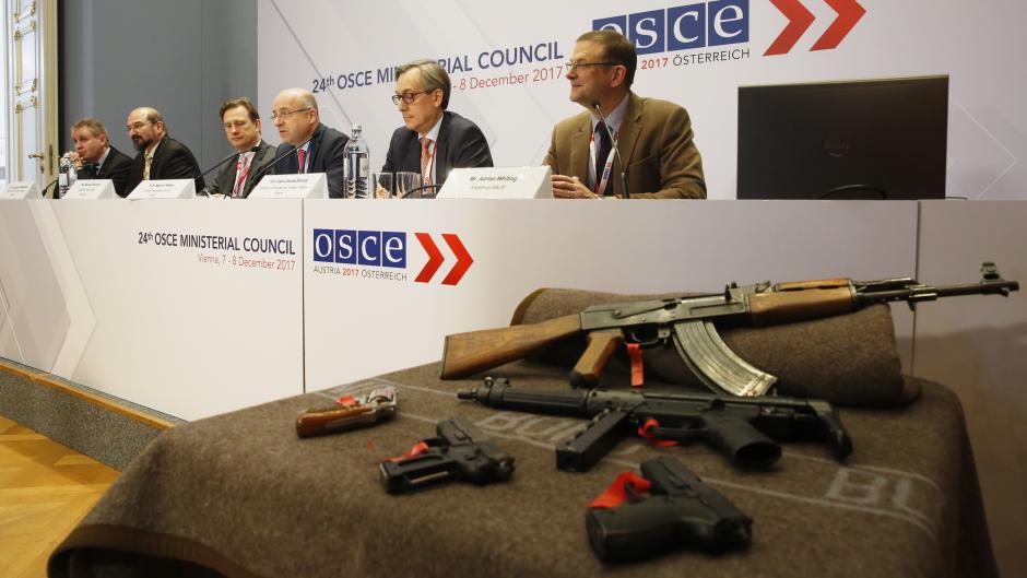 Display of deactivated small arms weapons at the side event, "Promoting Deactivation of Small Arms and Light Weapons", Vienna, 8 December 2017.