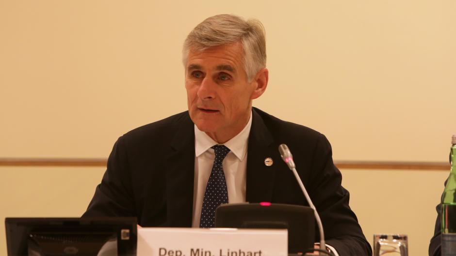 Deputy Foreign Minister of Austria Michael Linhart speaks during the focused discussion on protection of civilians in eastern Ukraine, Vienna, 8 December 2017.
