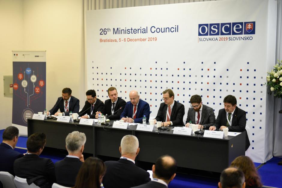 Marcel Peško, Director of the OSCE Conflict Prevention Centre, speaking during the side event "Contributing to security and safety needs in the OSCE area: OSCE cross-dimensional approach to SALW and SCA", Bratislava, 5 December 2019.