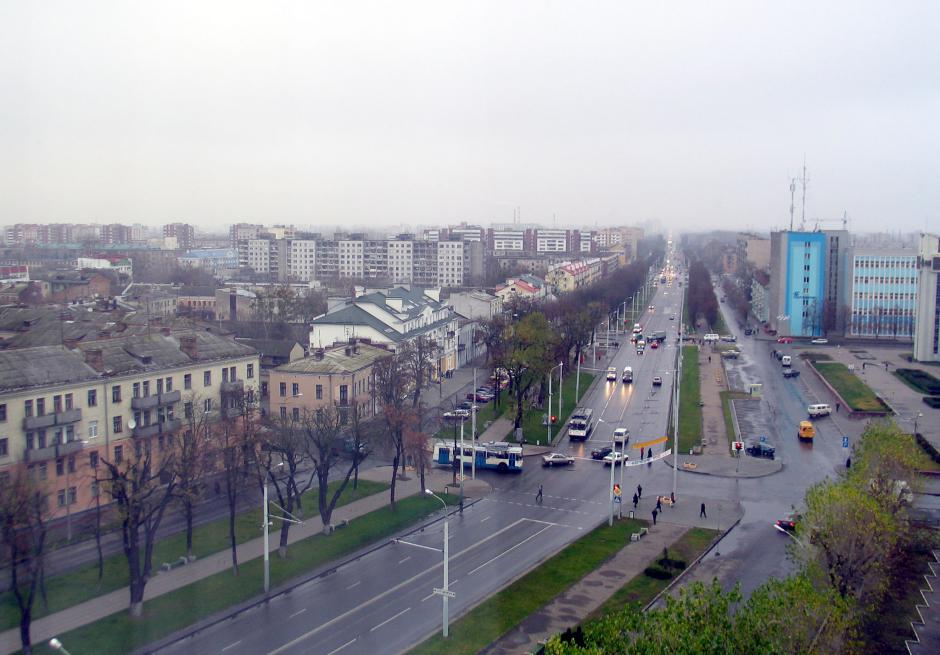 A rainy morning in the Belarus city of Brest, November 2004.