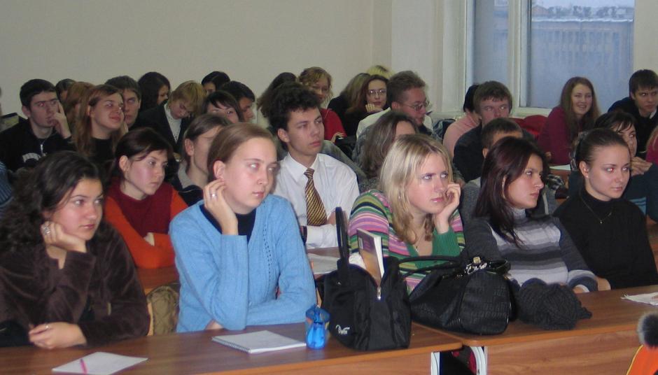 Students of the Minsk University at a lecture on the OSCE and its work in Belarus, 9 November 2004.