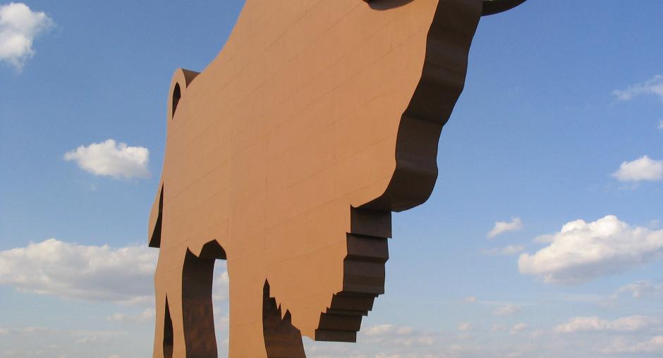 A monument of a giant bison, the unofficial symbol of Belarus, on a highway between the capital Minsk and the city of Brest, on the western border of the country. (OSCE)