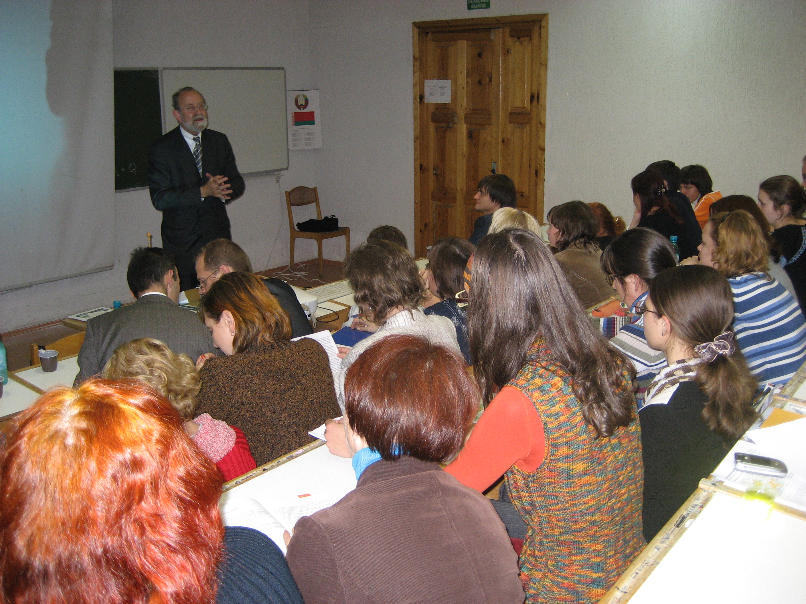 The Co-ordinator of OSCE Economic and Environmental Activities, Bernard Snoy, delivering a lecture to students of the international environmental Sakharov University in Minsk, 14 November 2007.