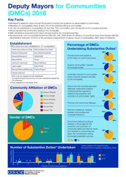 The infosheet includes information about the establishment and functioning of the Deputy Mayors for Communities (DMCs) and Deputy Chairpersons of the Municipal Assembly for Communities (DCMACs) in 2016.