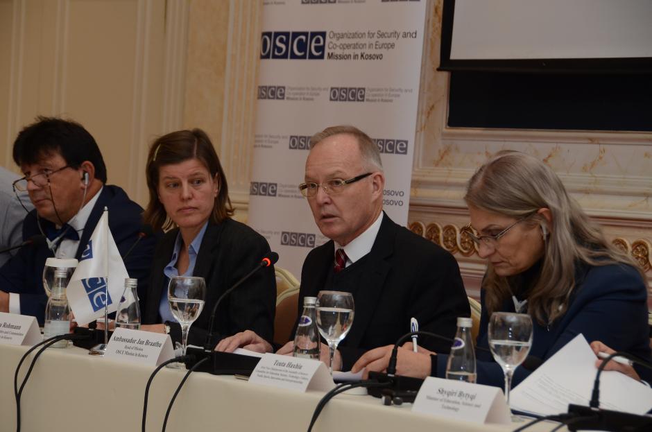 The Head of the OSCE Mission, Ambassador Jan Braathu, launching a report on access to pre-university education for non-majority communities in Kosovo, Prishtinë/Priština, 18 December 2018.