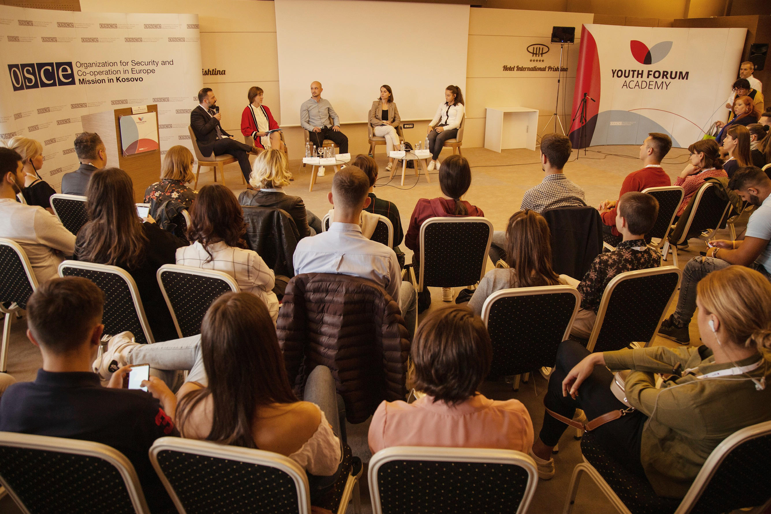 Participants of the Youth Forum Academy listening to a discussion, 25th September 2019.