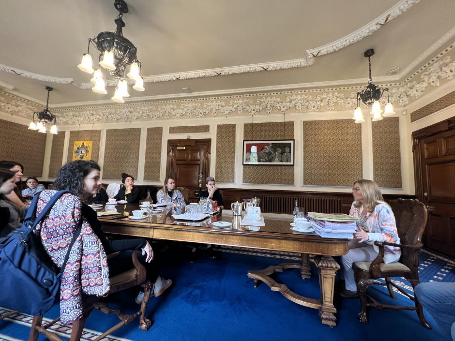 Tina Black, Lord Mayor of Belfast, welcomes the alumnae at City Hall. Belfast, 13 October 2022.