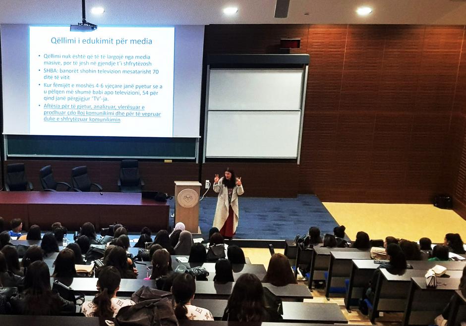 Professor Lindita Aliu-Tahiri during OSCE Mission-organized lectures on media and information literacy for university students, Mitrovicë/Mitrovica South, 5 November 2022