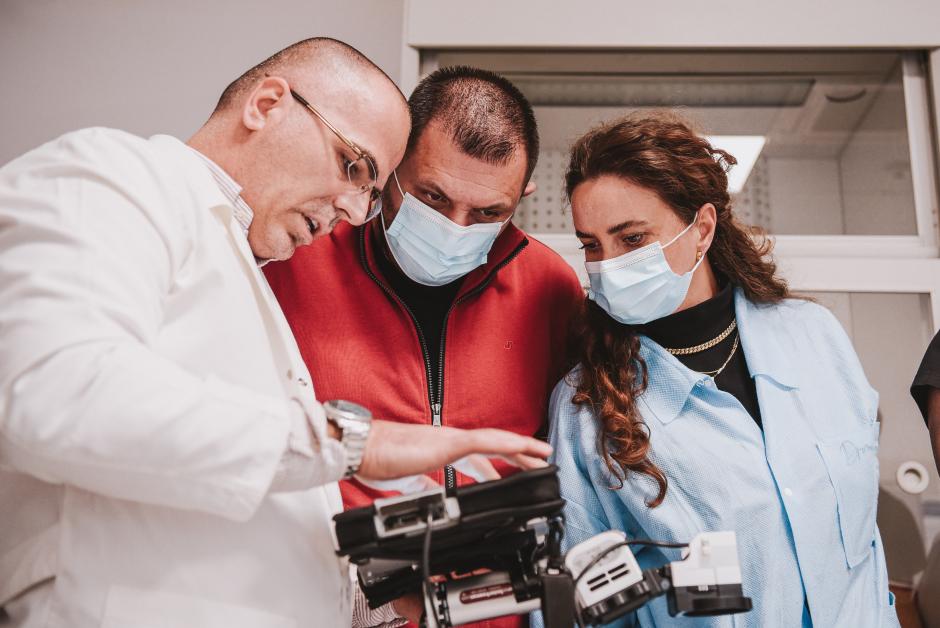 Participants practice using the crime light camera in the forensics lab, Prishtinë/Priština, 2 March 2023.