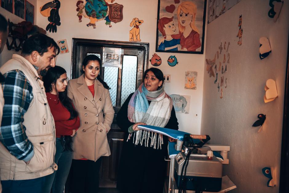 Selajtin Emini, the Romano Anglunipe Director, checks out the donated equipment together with the beneficiaries.