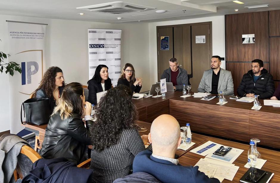 Commissioner Krenare Sogojeva-Dermaku, the Head of the Information and Privacy Agency, discusses the right to privacy and access to public documents with workshop participants, Mitrovicë/Mitrovica South, 6 April 2023