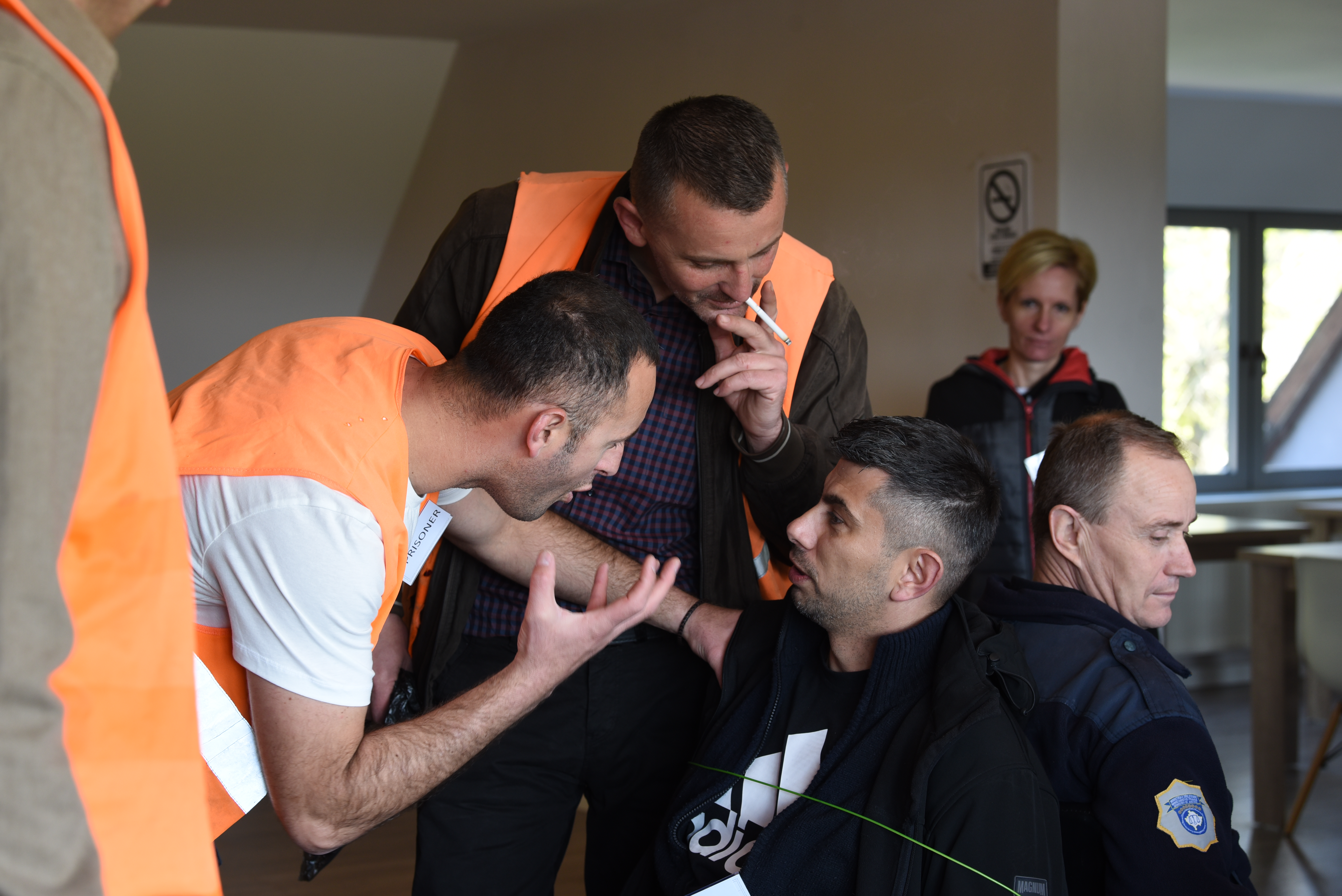 Officers acting out their roles in a hostage-taking simulation. Vushtrri/Vučitrn, 27 April 2023.