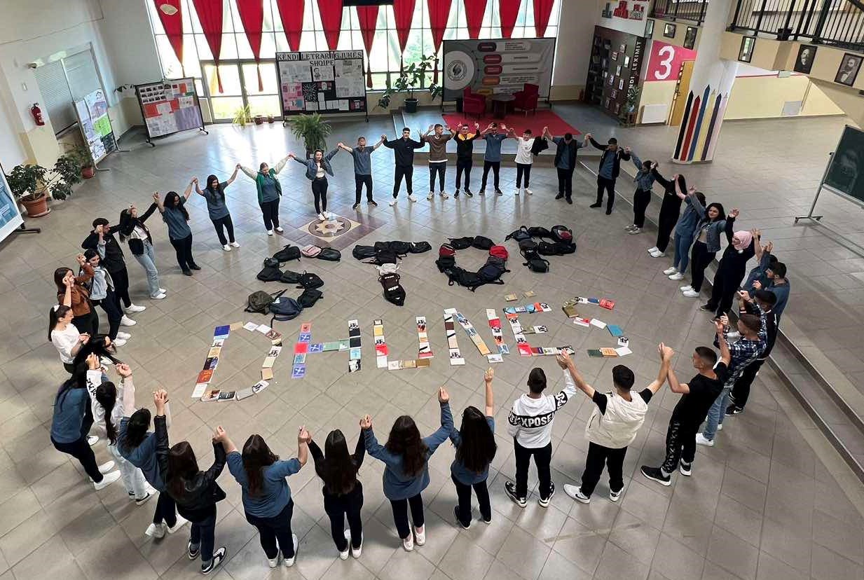Students of Ymer Prizreni High School send a message against violence, Prizren, 18 May 2023. (Elmira Kryeziu)