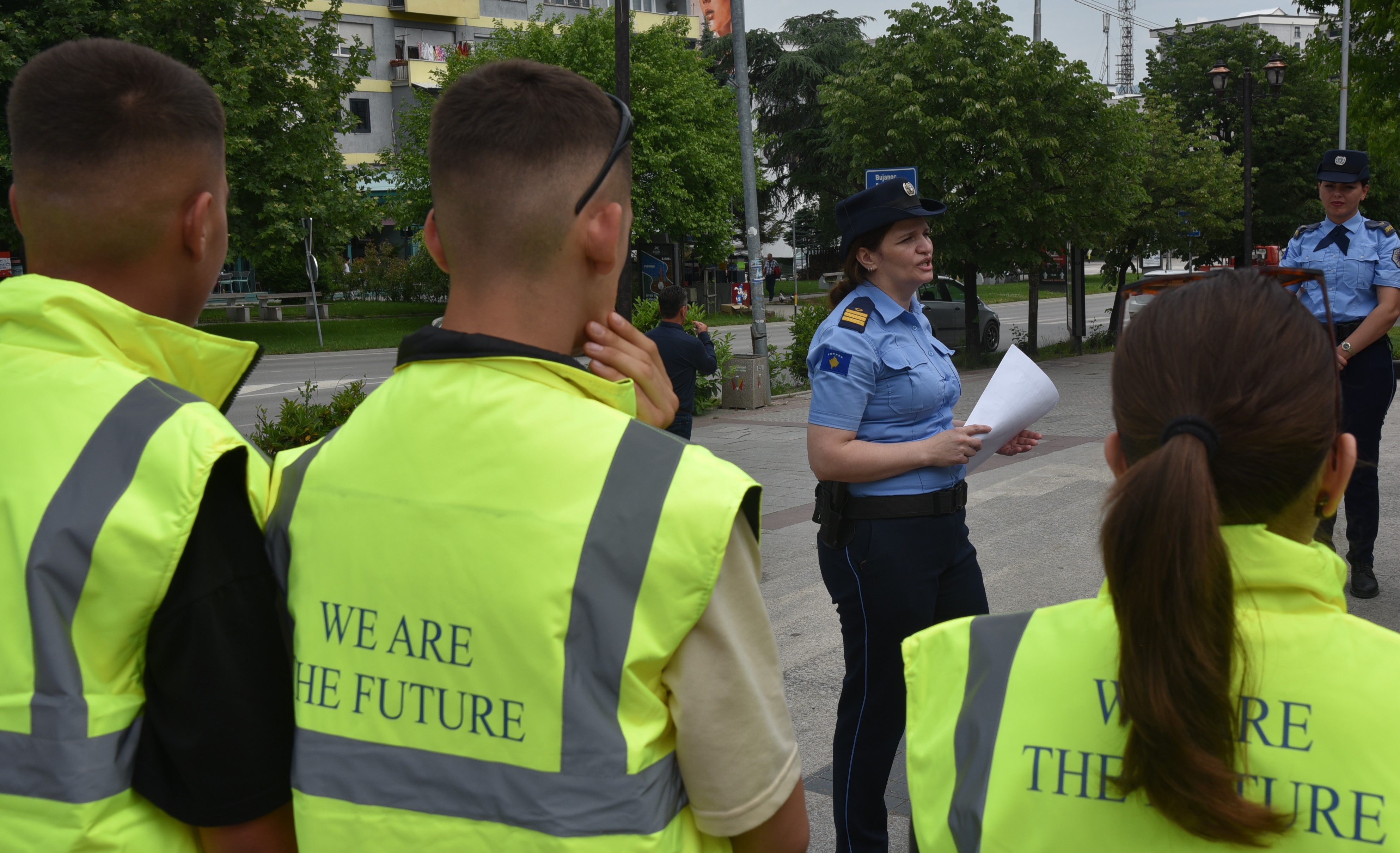 Students from Mehmet Isai high school listen to a Kosovo Police officer explain the quiz rules, followed by a discussion on what they learned about youth related topics, Gjilan/Gnjilane. 6 June 2023