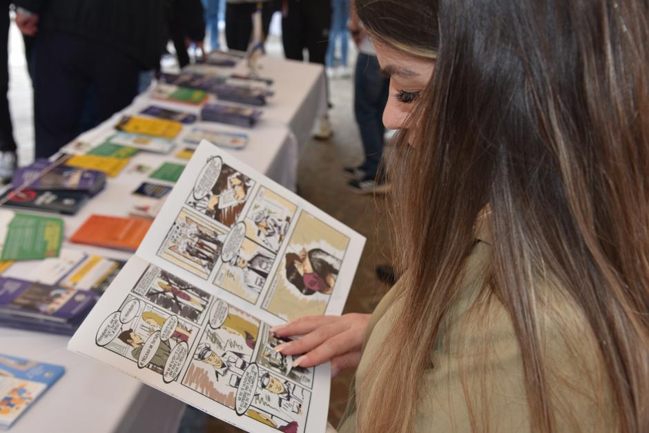 A visitor goes through a brochure during the Community Safety Week campaign. Pejë/ Peć, 8 June 2023