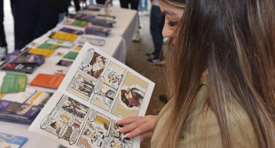 They also talked one-on-one with visitors about these topics, including with elementary and high schools students and passersby, and distributed awareness raising materials on traffic safety, domestic violence and youth related topics.