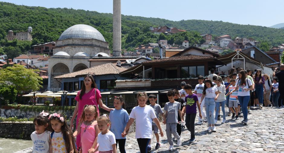 To raise awareness about the importance of cultural heritage and religious diversity, the OSCE Mission in Kosovo organized a visit for 73 primary and secondary school students from Mitrovica/Mitrovicë and Gjilan/Gnjilane regions and their teachers to four cultural and religious heritage sites in the Historic Center of Prizren.