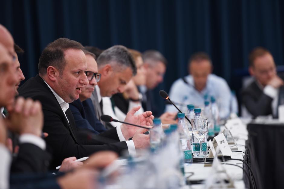 Albert Zogaj, Head of the Kosovo Judicial Council, speaks during an OSCE-supported conference on justice reform, Prishtinë/Priština, 05 July 2023.