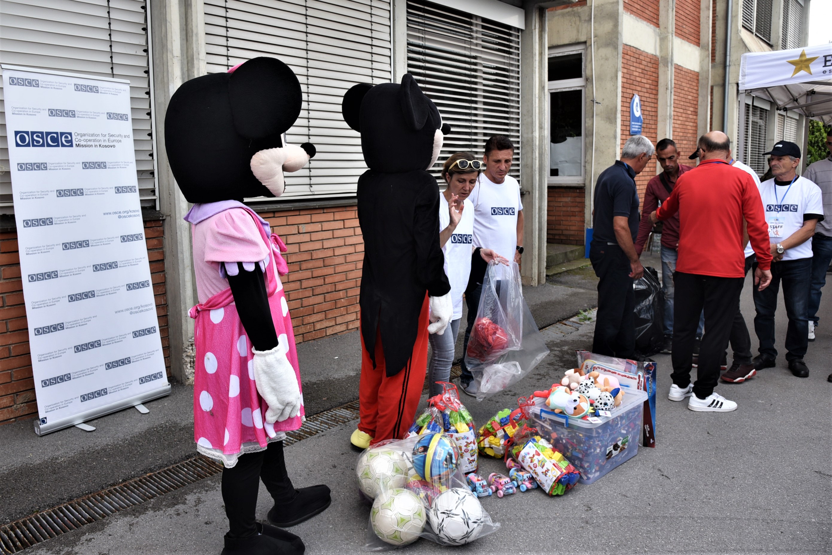 Staff members of the OSCE Mission in Kosovo donate toys to participants, 16 September 2023