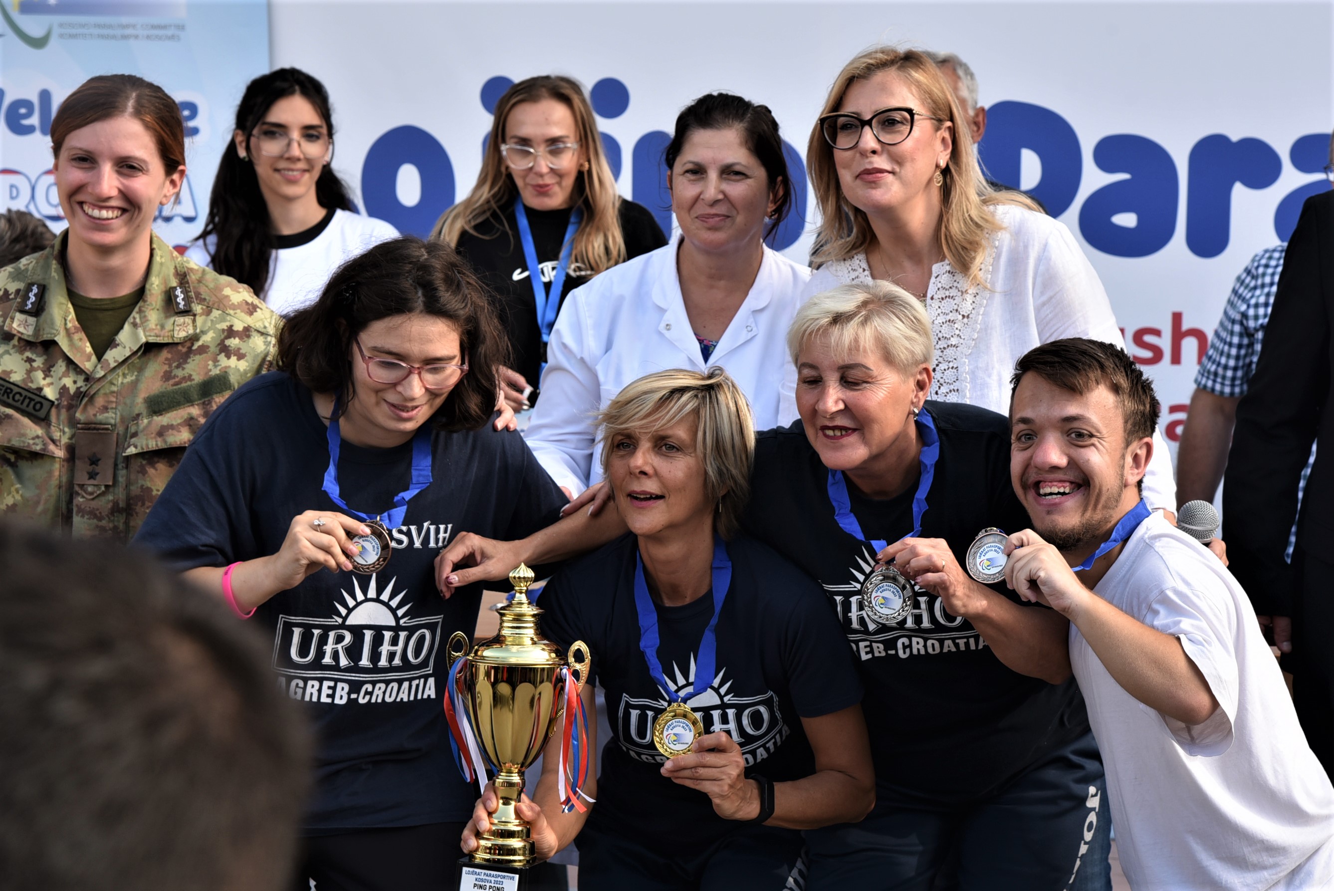Winners in the Para Sports Games for people with special needs showcase their medals as the 17th edition of the games concludes, 17 September 2023