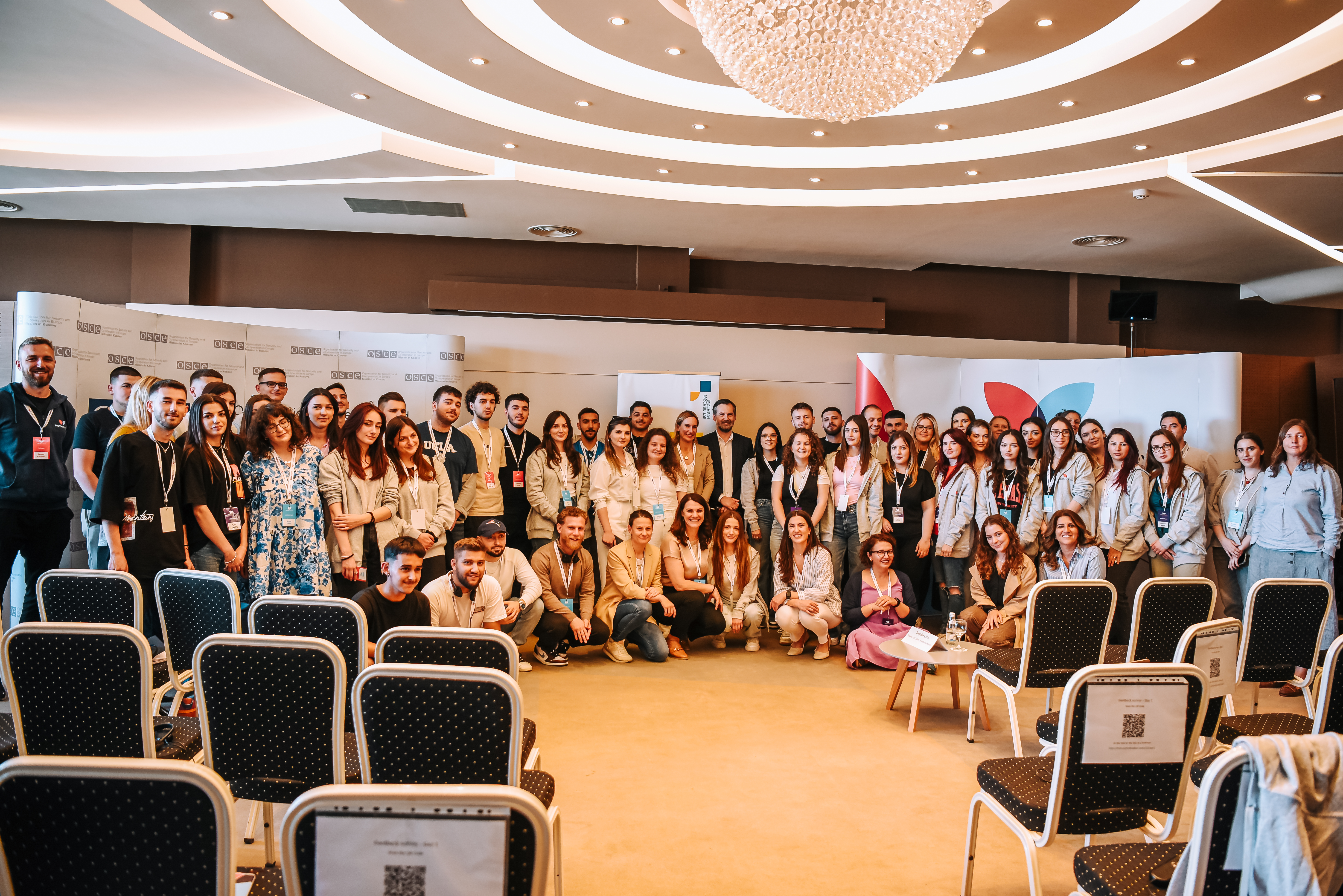Deputy Head of the OSCE Mission in Kosovo, Cornelia Taylor, and Minister of Culture, Youth and Sport, Hajrulla Çeku, together with participants of the 6th edition of Youth Academy. Prishtinë/Priština, 13 May 2024.