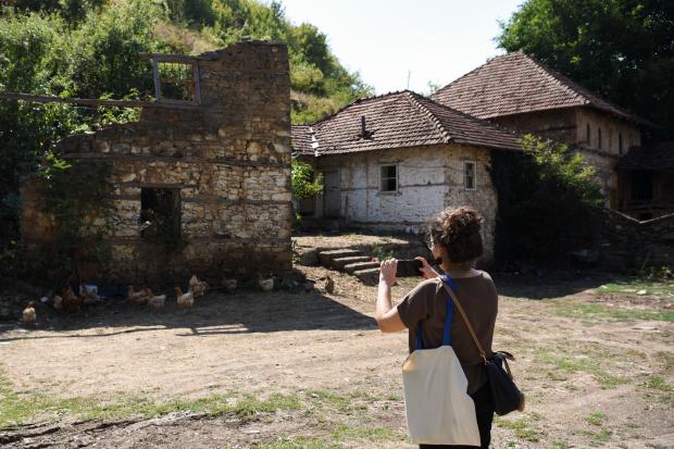 A participant captures architectural details of a village home through photography as part of the documentation process. 19 August 2025 (OSCE/Leurina Mehmeti).