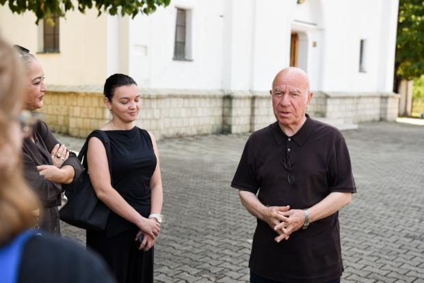 Don Lush Gjergji shares insights with students about the historical significance of the church. 19 August 2025 (OSCE/Leurina Mehmeti).