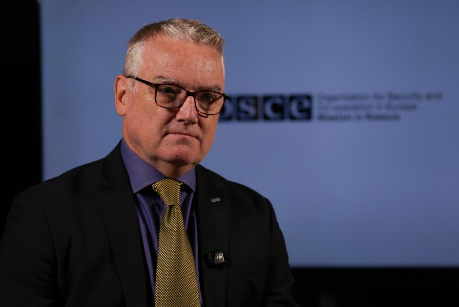 Head of the OSCE Mission in Kosovo, Ambassador Gerard McGurk, speaks for the Beyond the Headlines documentary on ending impunity for crimes against journalists. 15 October 2025