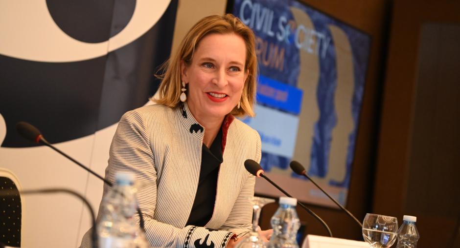 Deputy Head of the OSCE Mission in Kosovo Cornelia Taylor opens the 8th Annual Civil Society Forum, Prishtinë/Priština, 26 November 2024 (OSCE/Fitim Xharra) Photo details