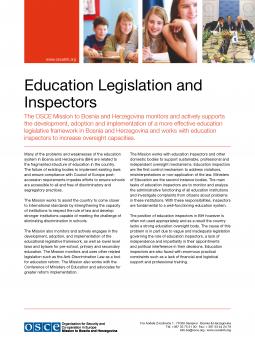 Factsheet on the work of the OSCE Mission to Bosnia and Herzegovina in monitoring and support of the development, adoption and implementation of a more effective education legislative framework in Bosnia and Herzegovina