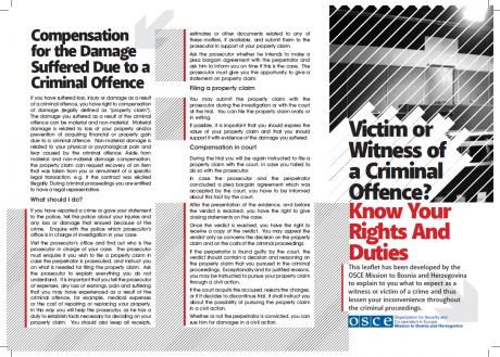 This leaflet has been developed by the OSCE Mission to Bosnia and Herzegovina to explain to you what to expect as a witness or victim of a crime and thus lessen your inconvenience throughout the criminal proceedings.