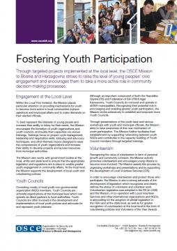 Through targeted projects implemented at the local level, the OSCE Mission to Bosnia and Herzegovina strives to raise the level of young peoples’ civic engagement and encourages them to take a more active role in community decision-making processes.