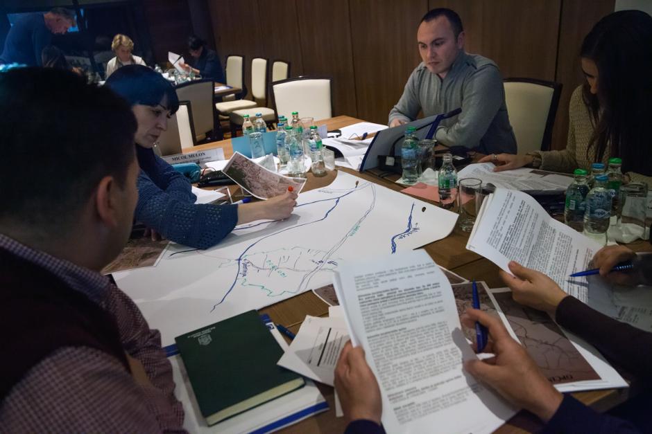 Training participants exercise practical risk identification and mapping at a regional disaster risk reduction training course for BiH and Serbian municipalities and Aarhus Centers, Sarajevo, 16 December 2015.