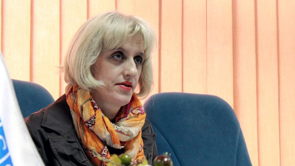 Sabina Jukan, the head of Sarajevo's Aarhus Centre, at a workshop addressing reducing disaster risk in local communities, Vogosca, Bosnia and Herzegovina, 11 November 2015.