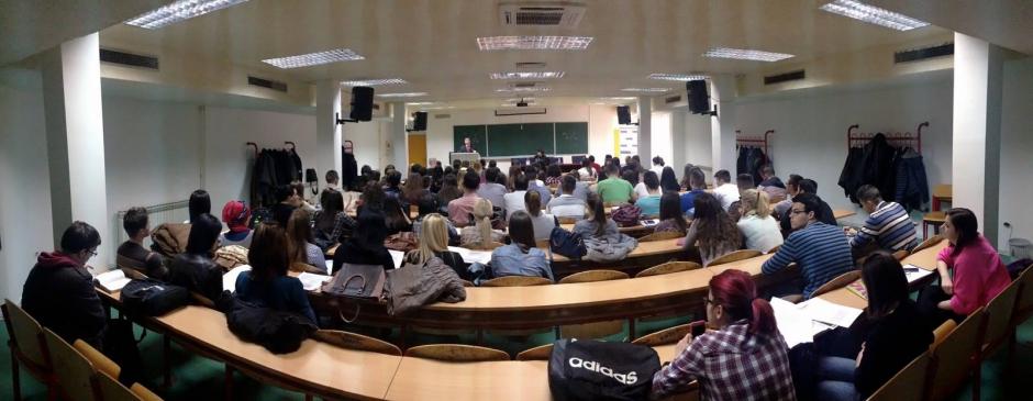 Participants during a lecture on hate crimes, human trafficking and war crimes cases processing for the students of Law faculty in Tuzla, 15 March 2016.