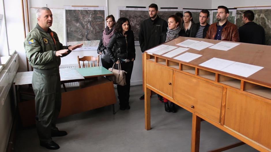 Member of the Air Force and Anti-Air Defence Brigade, greeting students at the Rajlovac Army Barracks, Sarajevo, 18 October 2016.