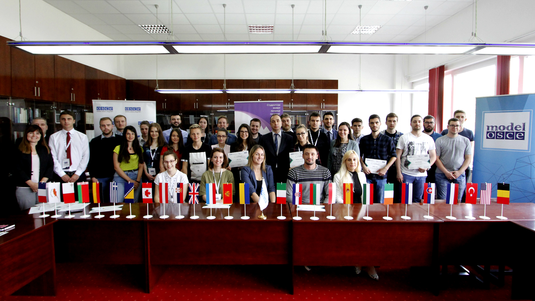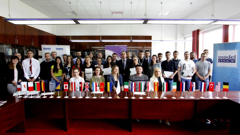 Participants of the 'OSCE Model' workshop, organized by the OSCE Mission to Bosnia and Herzegovina, its Youth Advisory Group and Students of the School of Political Science of the University of Banja Luka, Banja Luka, 23 May 2018.