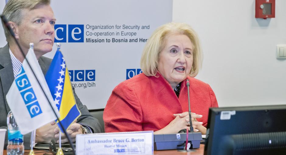 Head of the OSCE Mission Bruce G. Berton elaborated on the country’s progress since Verveer’s last visit in 2016. “There have been some bright spots on the horizon, for example the adoption of new laws at the state and entity levels, dealing with issues such as discrimination and domestic violence,” said Berton. “However, these laws have not always been followed up by implementation, with the current political impasse significantly hampering progress,” he added.