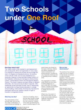The 1990s conflict in BiH resulted in vast displacement and consequently ethnic homogenization in many areas. In an attempt to reverse this process and encourage the return of refugees and displaced persons, the practice of ‘two schools under one roof’ was established as a temporary measure in three ethnically-divided cantons of the Federation of Bosnia and Herzegovina (Zenica Doboj Canton, Central Bosnia Canton, and Herzegovina Neretva Canton). This interim measure provided children of different ethnicities, who had previously studied in separate, often inadequate private premises (houses, bars, or restaurants), an opportunity to at least receive education in a single school building. Unfortunately, the temporary has become permanent without any systemic solution in sight to transition to integrated schools.
