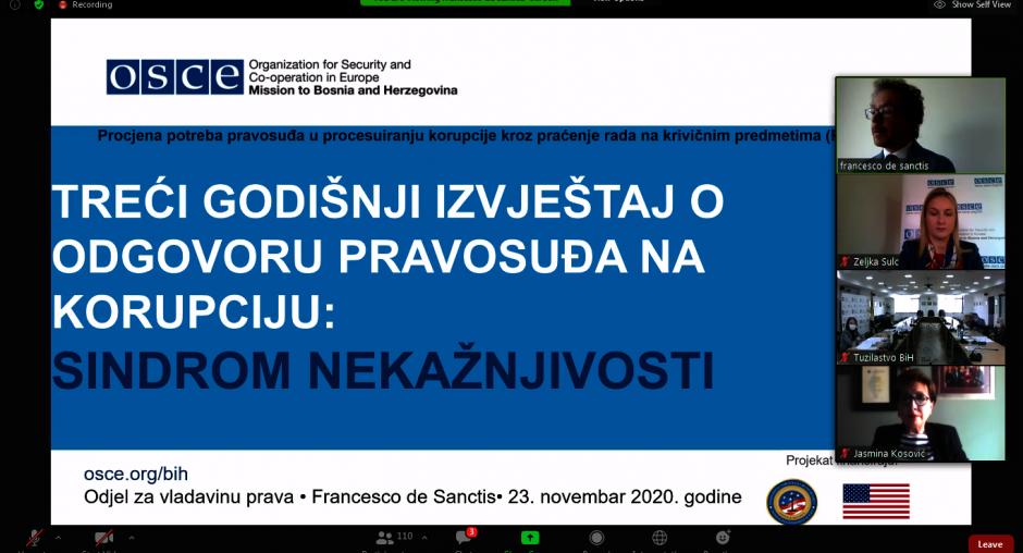 SARAJEVO, 23 November 2020 – The OSCE Mission to Bosnia and Herzegovina (BiH) digitally presented today its third report on the monitoring of corruption cases before courts in BiH.