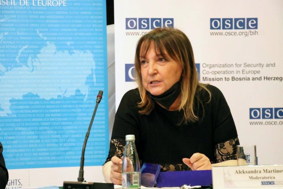 Aleksandra Martinović, Vice President of the FBiH Constitutional Court, moderates OSCE Mission to Bosnia and Herzegovina-supported roundtable on harmonization of judicial practices in BiH, Sarajevo, 6 December 2021.