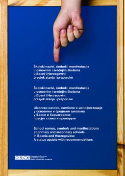 This report examines school names, symbols and manifestations at the primary and secondary school level in Bosnia and Herzegovina. The report is the latest status update produced by the OSCE Mission to Bosnia and Herzegovina (the Mission) on the topic of non-inclusive education in the country. Findings are based on the Mission’s regular monitoring of more than 2,000 central and branch schools located throughout BiH.