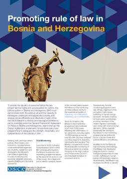 To ensure the equality of everyone before the law, protect fair trial rights, and secure justice for victims, the judicial system in Bosnia and Herzegovina (BiH) must demonstrate both the political will and the capacity to investigate, prosecute and adjudicate complex and serious crimes efficiently and effectively. In light of this, the OSCE Mission to Bosnia and Herzegovina (Mission), per its mandate under the General Framework Agreement for Peace in Bosnia and Herzegovina, also known as the Dayton Agreement, implements its extensive rule of law programming to safeguard the strength, impartiality, and independence of the judiciary in BiH.